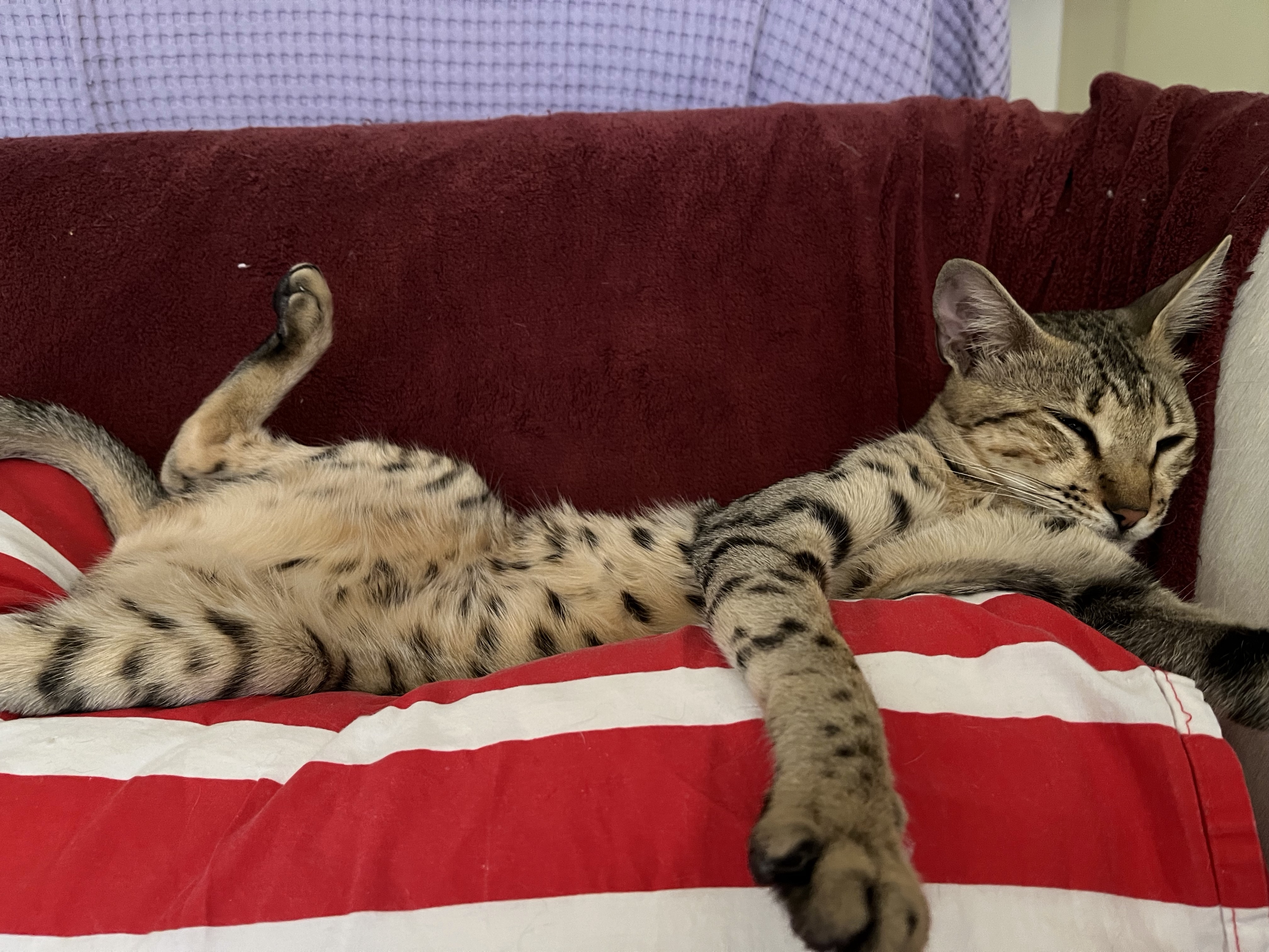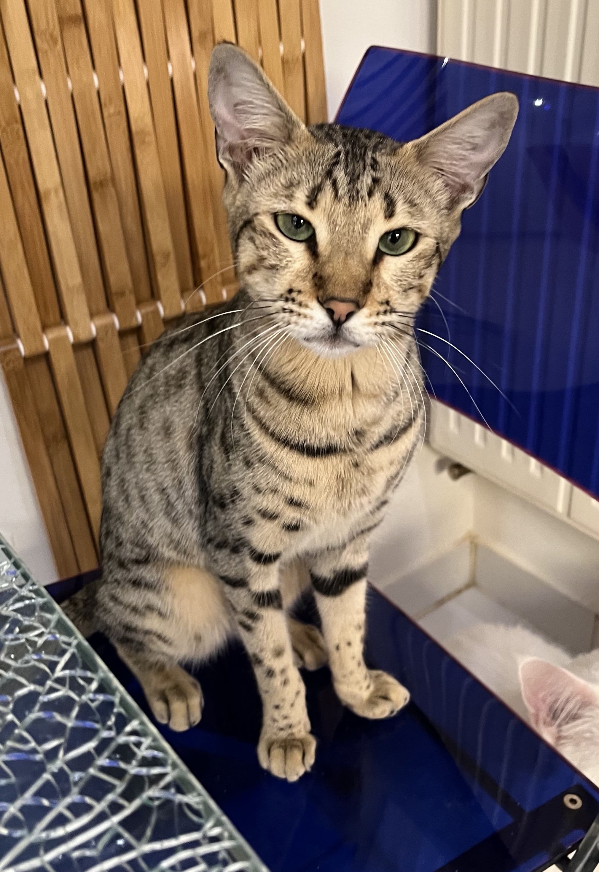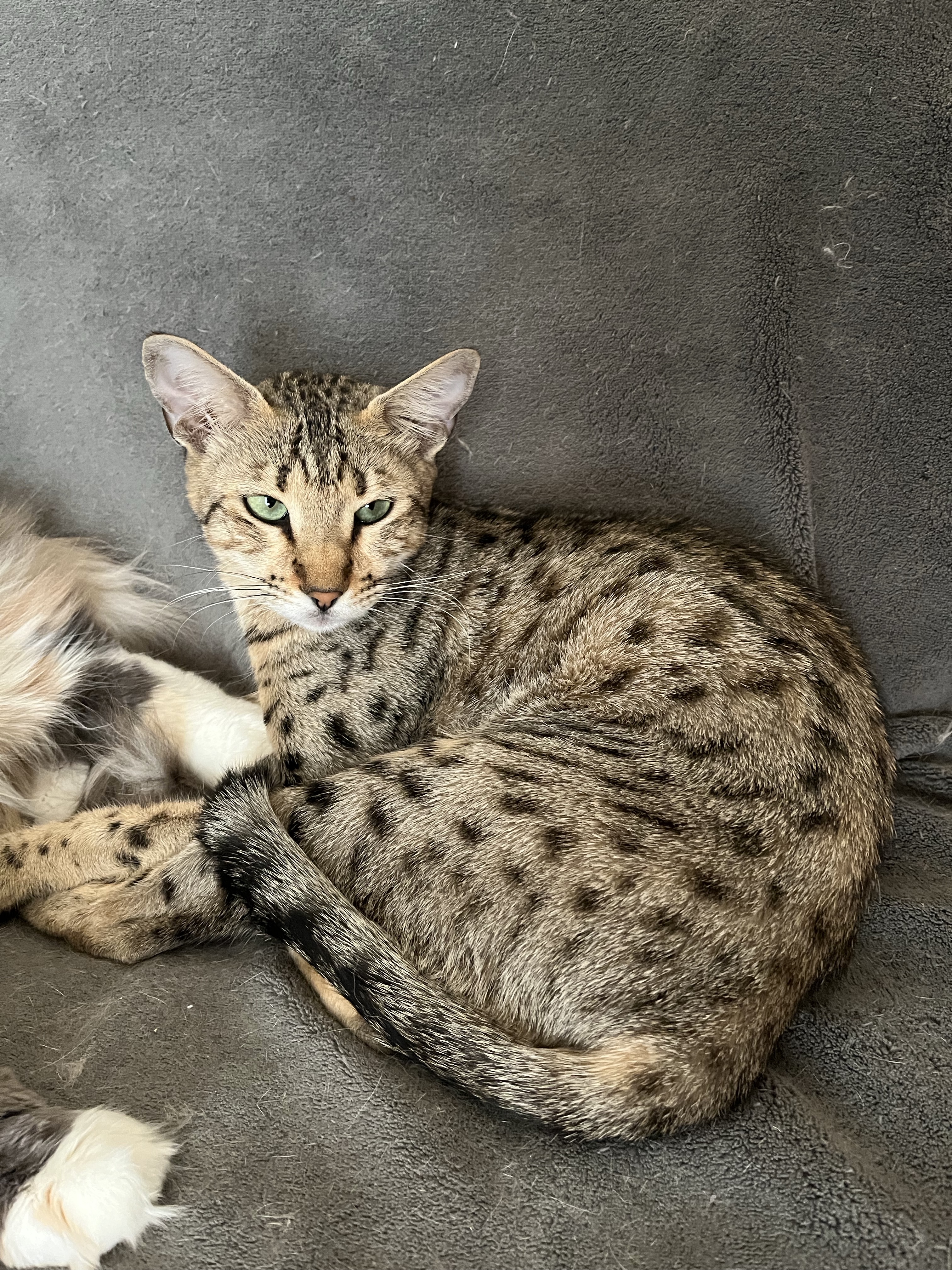 « Nous avons accueilli Pépin, un petit Savannah depuis Décembre 2020 et nous en sommes ravis ! Espiègle, joueur, sociable, équilibré, adorant donner et recevoir de gros câlins, bref bien dans sa peau et dans son cœur. Encore merci pour votre accueil, vos conseils et votre disponibilité. Un bel élevage familial à recommander !
