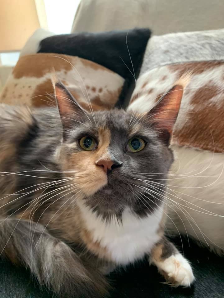 Femelle Maine Coon, robe blue tortie blotched tabby and white